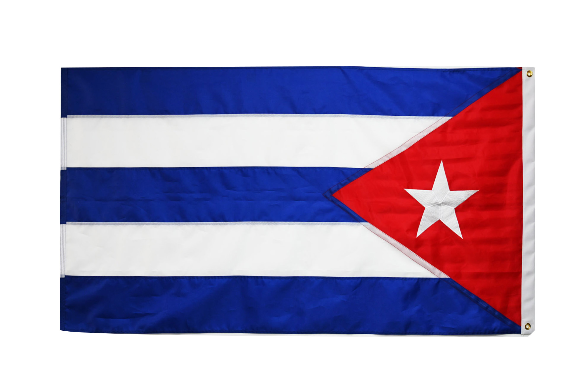 This premium 3'x5' Cuban flag features exquisite embroidery, and strong brass grommets.